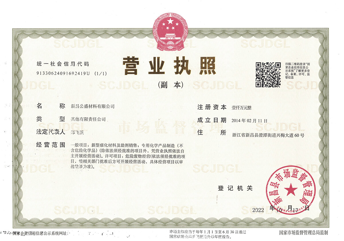 新昌公盛材料有限公司成立于2014年,坐落在江南大佛名城浙江新昌,地理位置優(yōu)越,交通便利,并配備有現代化的廠房和實驗樓,總占地面積80畝。公司聚焦于研發(fā)和生產用于醫(yī)藥、農藥、染料、材料等精細化工領域的貴金屬催化劑。目前主要從事鈀炭、鉑炭、釕炭等多項催化劑及醋酸鈀、DPPF二氯化鈀、雙三苯基膦二氯化鈀、四三苯基膦鈀、DBA鈀等均相催化劑的研發(fā)、生產、銷售以及失效鈀、失效鉑催化劑的回收再加工等業務。公司成立以來,一直以提升客戶產品的競爭力為經營宗旨,通過持續(xù)改進客戶所用催化劑的性能,來提高客戶產品的收率,提高催化劑的套用次數,提高失效催化劑的貴金屬回收率,來降低客戶產品中貴金屬催化劑的成本,進而提升客戶產品的競爭力。